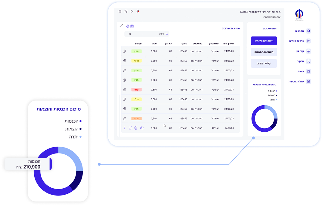 Displaying a pie-chart widget on the dashboard to show expenses and income